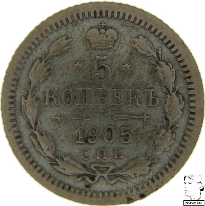 LaZooRo: Rusija 5 Kopeks 1905 AR XF - srebro