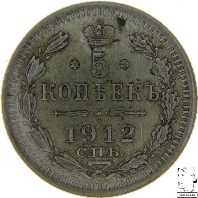 LaZooRo: Rusija 5 Kopeks 1912 ZB UNC - srebro