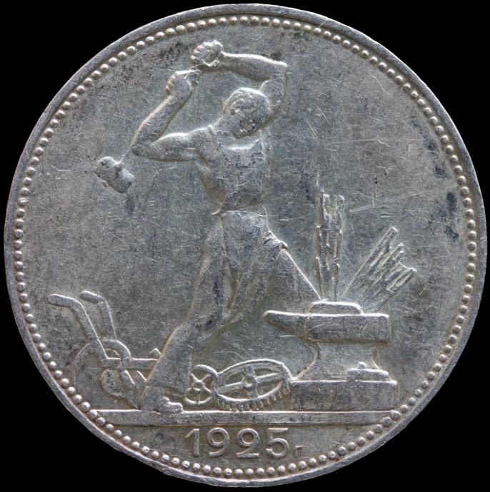 LaZooRo: Rusija 50 Kopeks 1/2 Rouble 1925 PL UNC - srebro