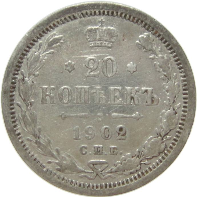 LaZooRo: Rusija 20 Kopeks 1902 VF - Srebro