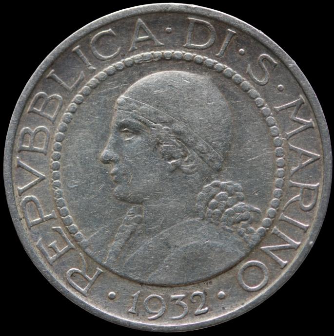 LaZooRo: San Marino 5 Lire 1932 XF / UNC redkejši - srebro
