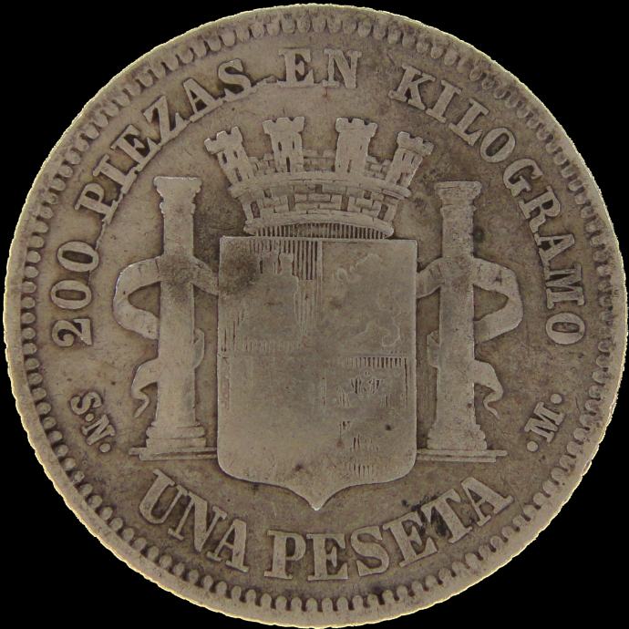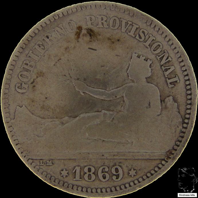 LaZooRo: Španija 1 Peseta 1869 VF počena matrica - srebro