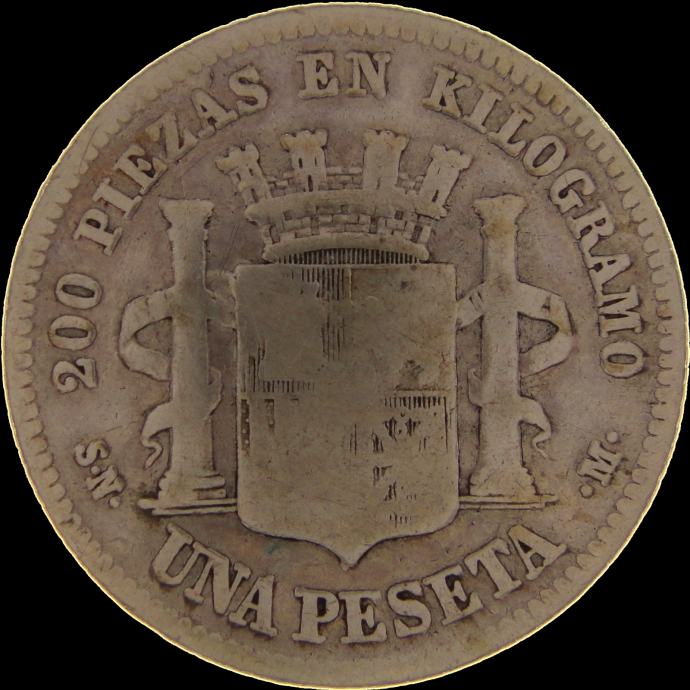 LaZooRo: Španija 1 Peseta 1869 VF - srebro