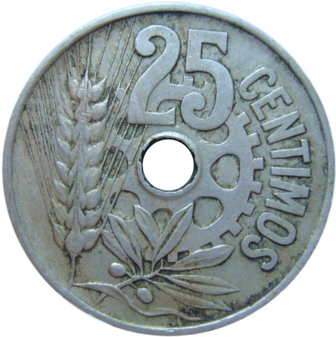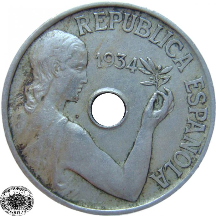 LaZooRo: Španija 25 Centimos 1934 VF/XF