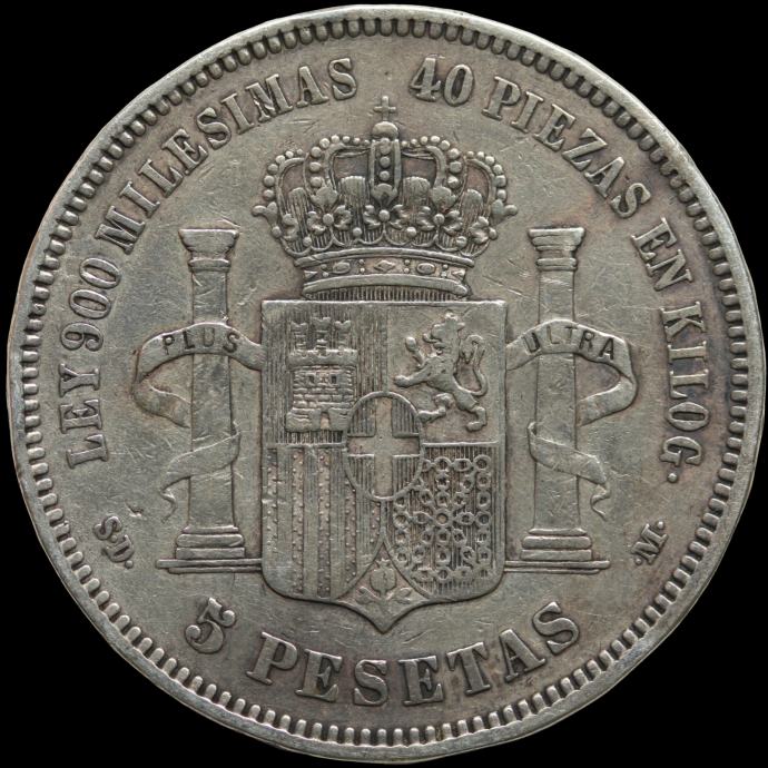 LaZooRo: Španija 5 Pesetas 1871 VF / XF - Srebro