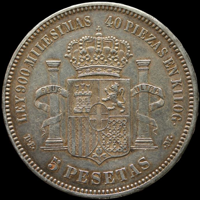 LaZooRo: Španija 5 Pesetas 1874 XF / UNC - srebro
