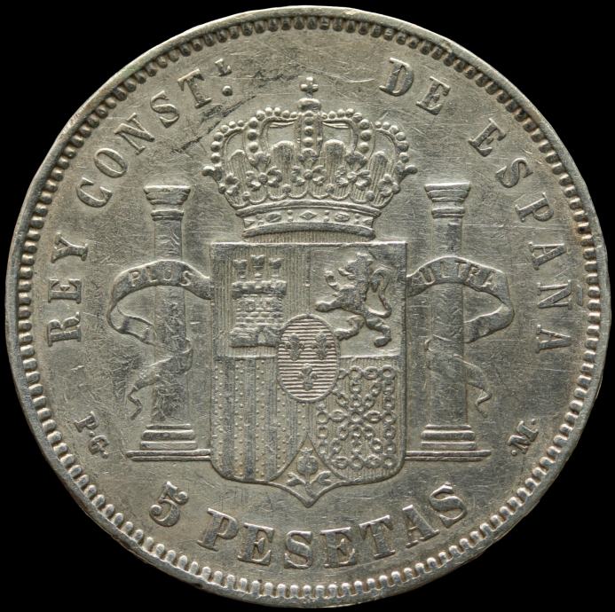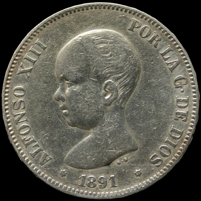 LaZooRo: Španija 5 Pesetas 1891 XF - srebro