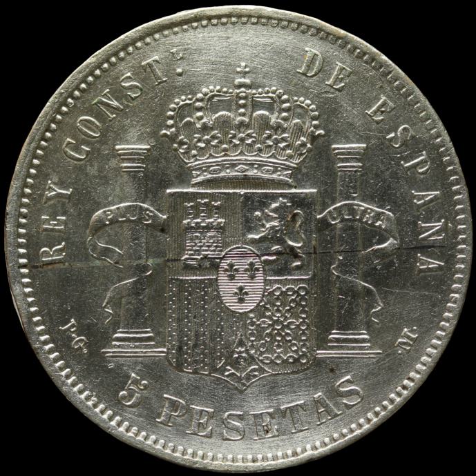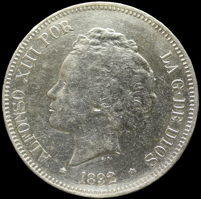LaZooRo: Španija 5 Pesetas 1892 XF - srebro