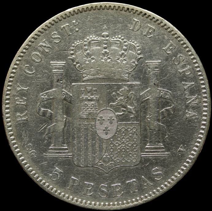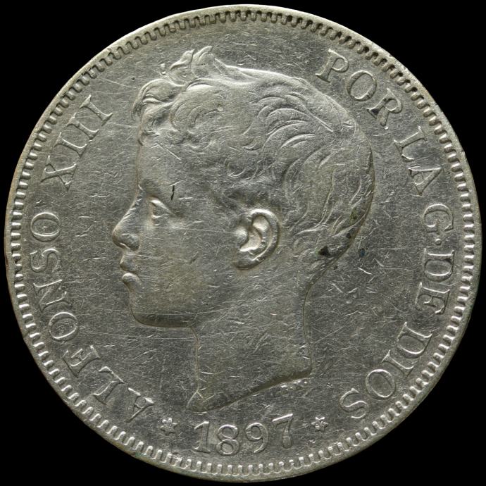 LaZooRo: Španija 5 Pesetas 1897 VF / XF - srebro