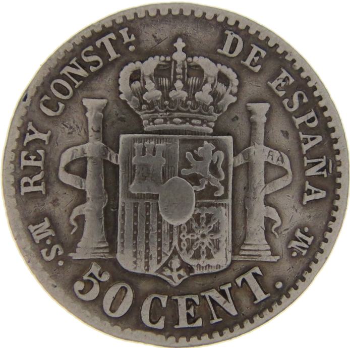 LaZooRo: Španija 50 Centimos 1880 VF - srebro