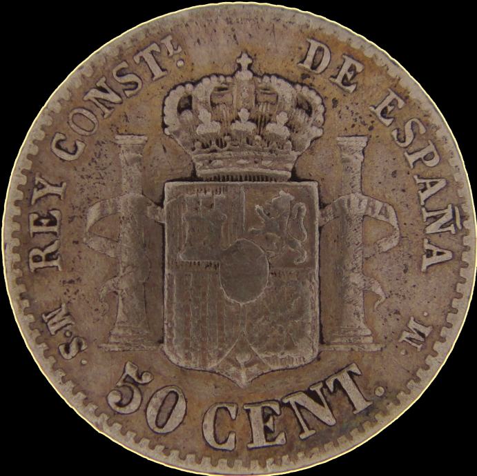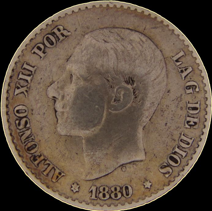 LaZooRo: Španija 50 Centimos 1880 XF - srebro