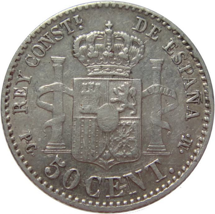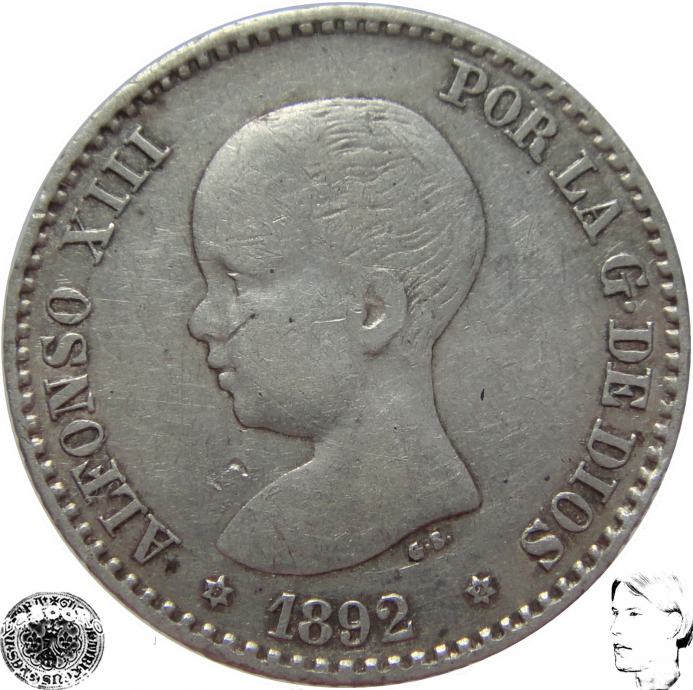 LaZooRo: Španija 50 Centimos 1892 XF - Srebro