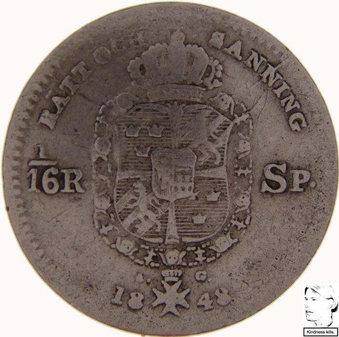 LaZooRo: Švedska 1/16 Riksdaler 1848 VF - srebro