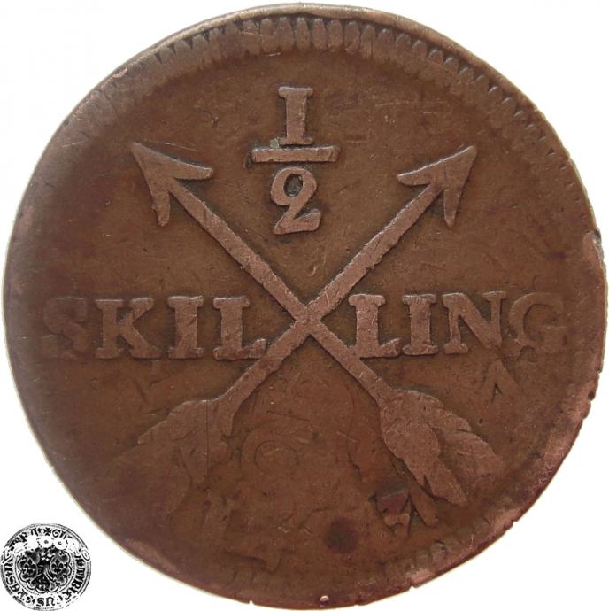 LaZooRo: Švedska 1/2 Skilling 1803 F/VF prekovan