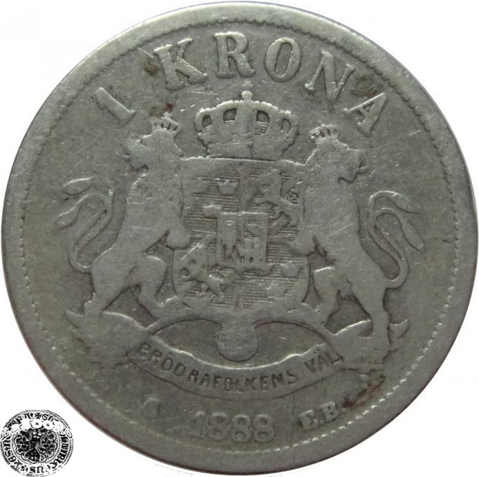 LaZooRo: Švedska 1 Krona 1888 F 'keydate' a - Srebro