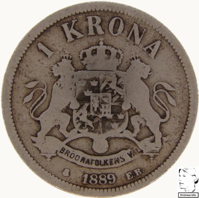 LaZooRo: Švedska 1 Krona 1889 VF - Srebro