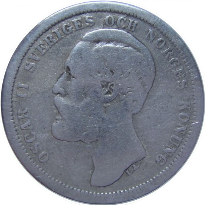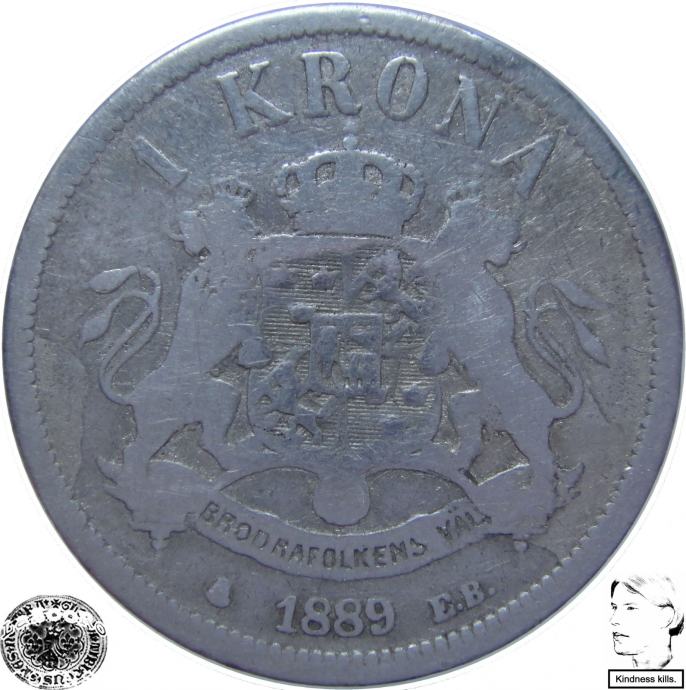 LaZooRo: Švedska 1 Krona 1889 VF - Srebro