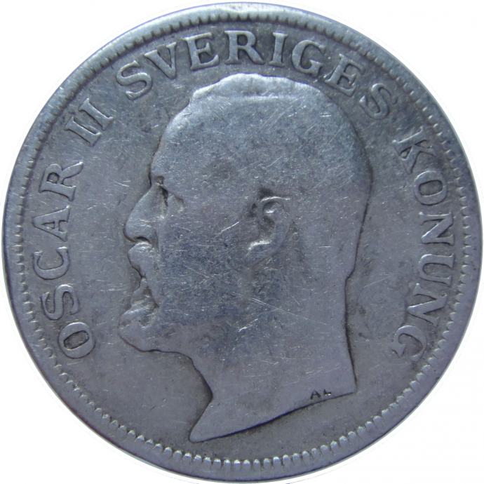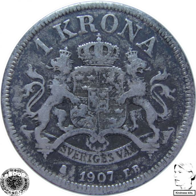 LaZooRo: Švedska 1 Krona 1907 VF/XF a - Srebro