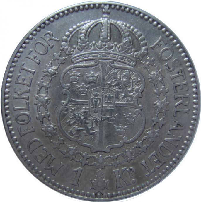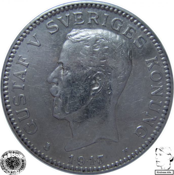 LaZooRo: Švedska 1 Krona 1913 XF - Srebro