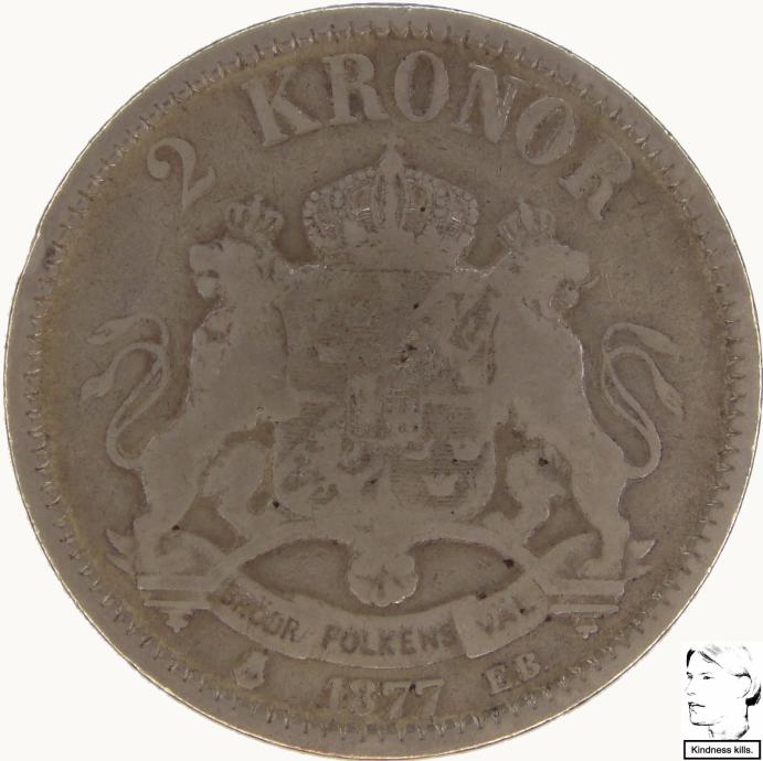 LaZooRo: Švedska 2 Kronor 1877 VF redkejši - srebro