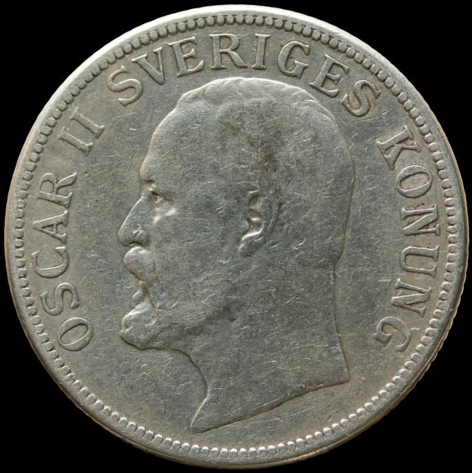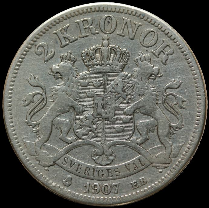 LaZooRo: Švedska 2 Kronor 1907 XF redkejši - srebro