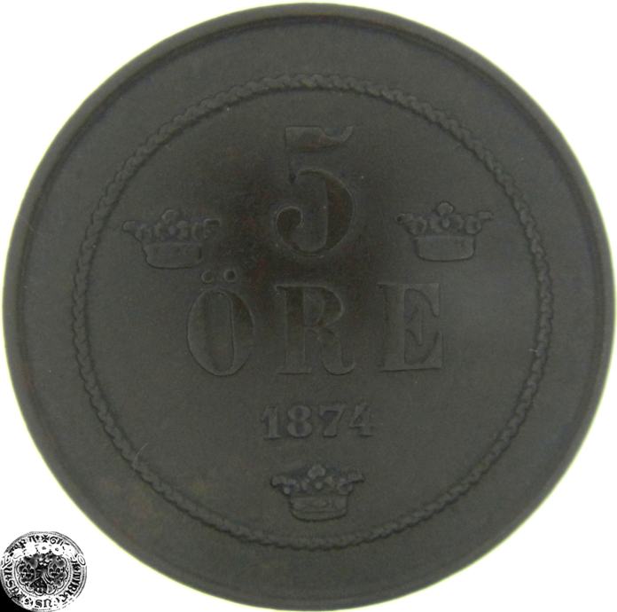 LaZooRo: Švedska 5 Ore 1874 XF / UNC