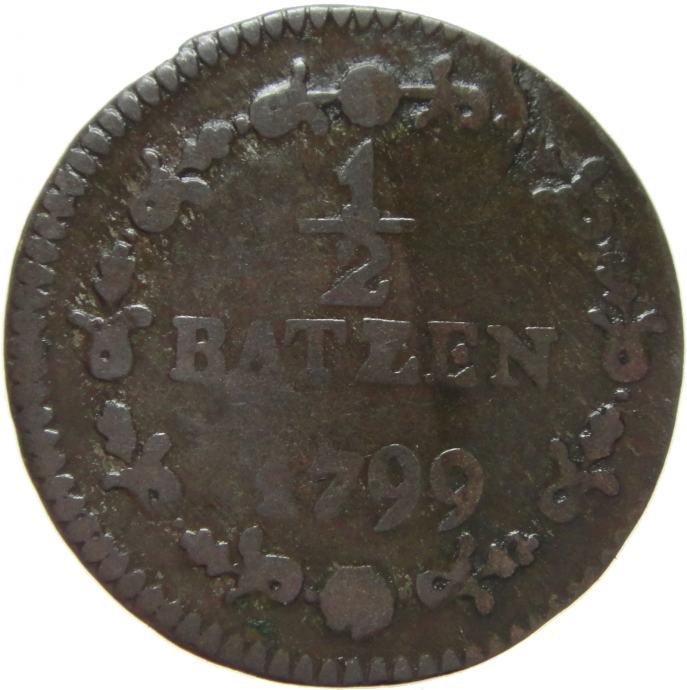 LaZooRo: Švica 1/2 Batzen 1799 F/VF - Srebro