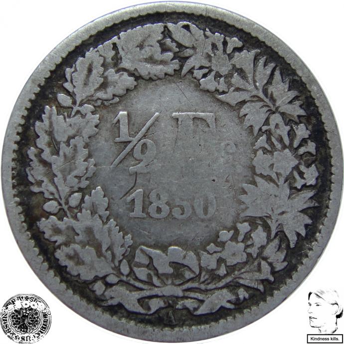 LaZooRo: Švica 1/2 Franc 1850 F - Srebro