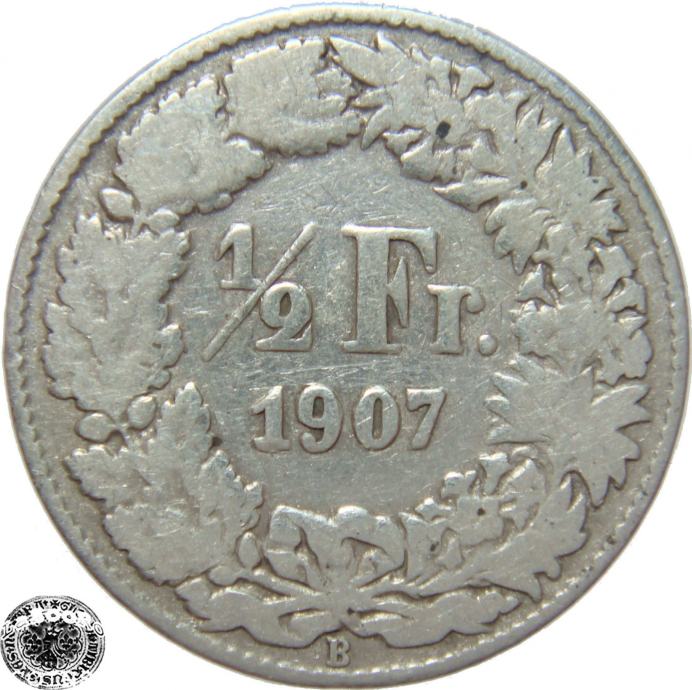 LaZooRo: Švica 1/2 Franc 1907 VF - Srebro