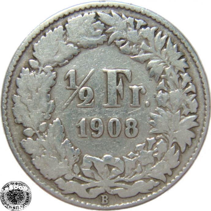 LaZooRo: Švica 1/2 Franc 1908 VF c - Srebro
