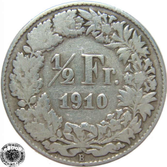 LaZooRo: Švica 1/2 Franc 1910 VF b - Srebro