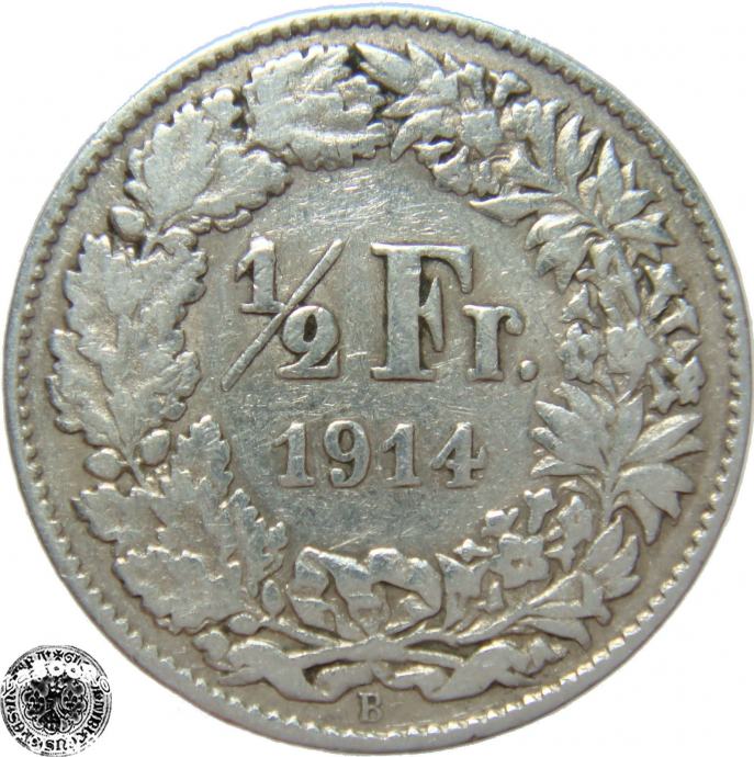 LaZooRo: Švica 1/2 Franc 1914 VF b - Srebro