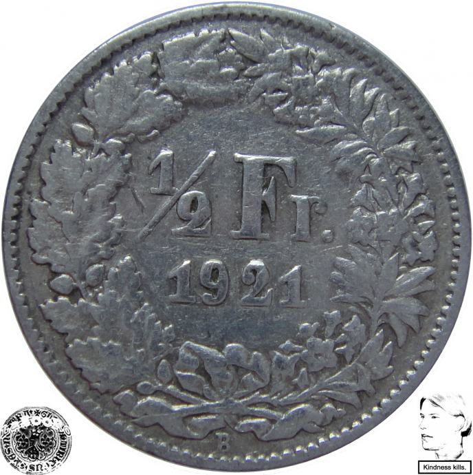 LaZooRo: Švica 1/2 Franc 1921 XF d - Srebro