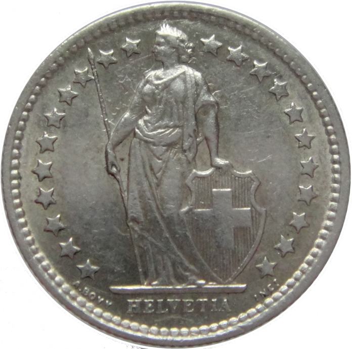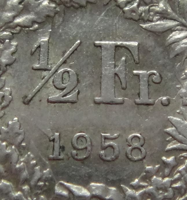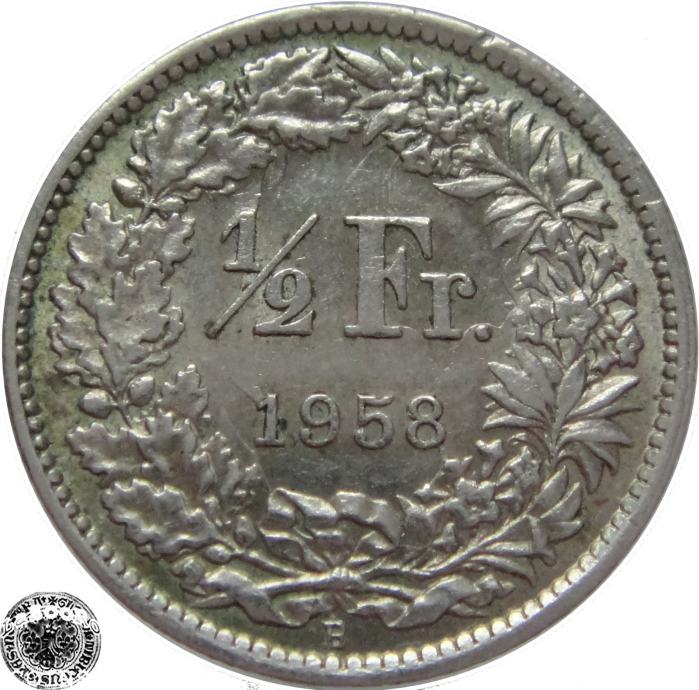 LaZooRo: Švica 1/2 Franc 1958 XF 'ghosting' - Srebro