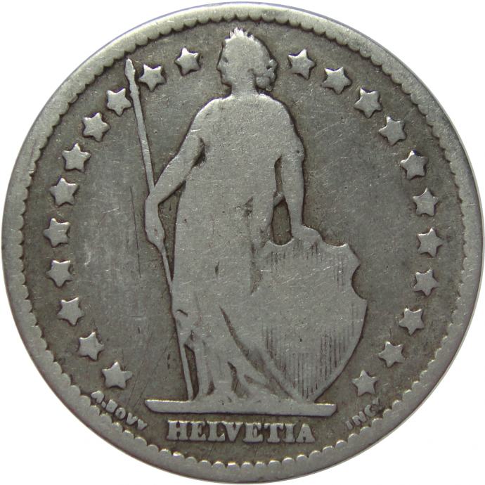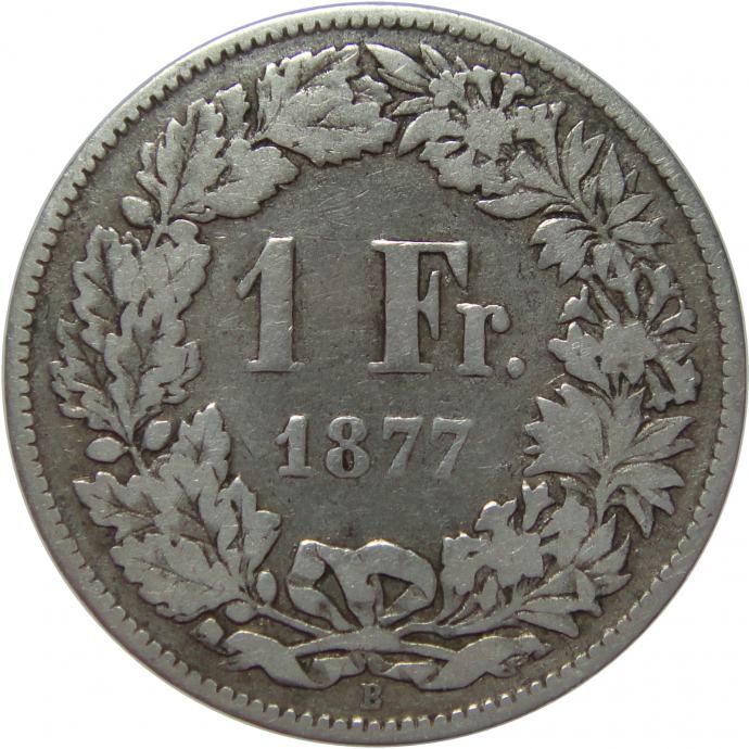 LaZooRo: Švica 1 Franc 1877 F/VF - Srebro