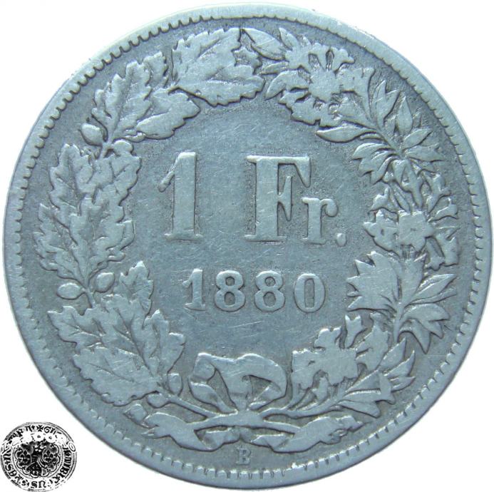 LaZooRo: Švica 1 Franc 1880 VF a - Srebro