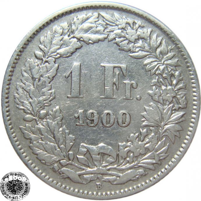LaZooRo: Švica 1 Franc 1900 VF c - Srebro