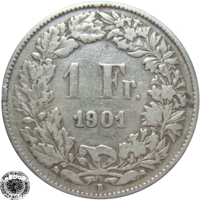 LaZooRo: Švica 1 Franc 1901 VF b - Srebro