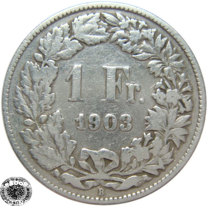LaZooRo: Švica 1 Franc 1903 VF - Srebro