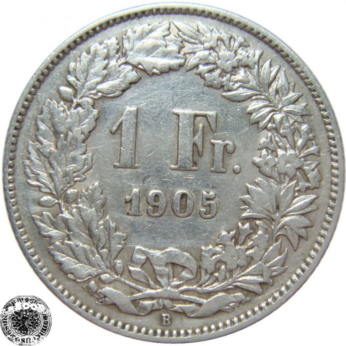 LaZooRo: Švica 1 Franc 1905 VF/XF b - Srebro