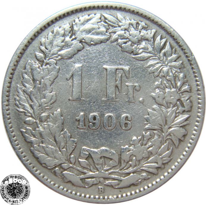 LaZooRo: Švica 1 Franc 1906 VF/XF - Srebro