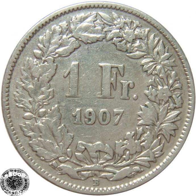 LaZooRo: Švica 1 Franc 1907 VF a - Srebro