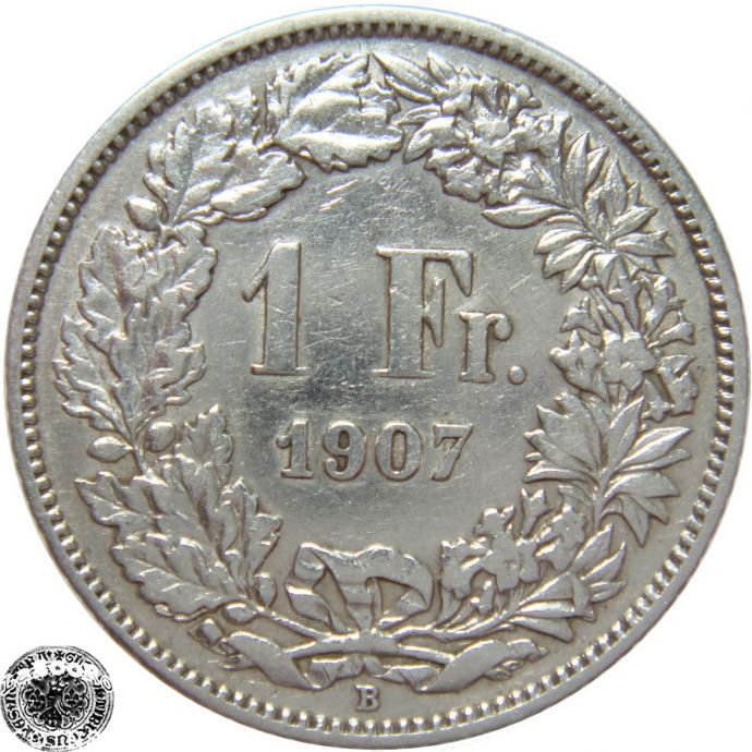 LaZooRo: Švica 1 Franc 1907 VF/XF c - Srebro