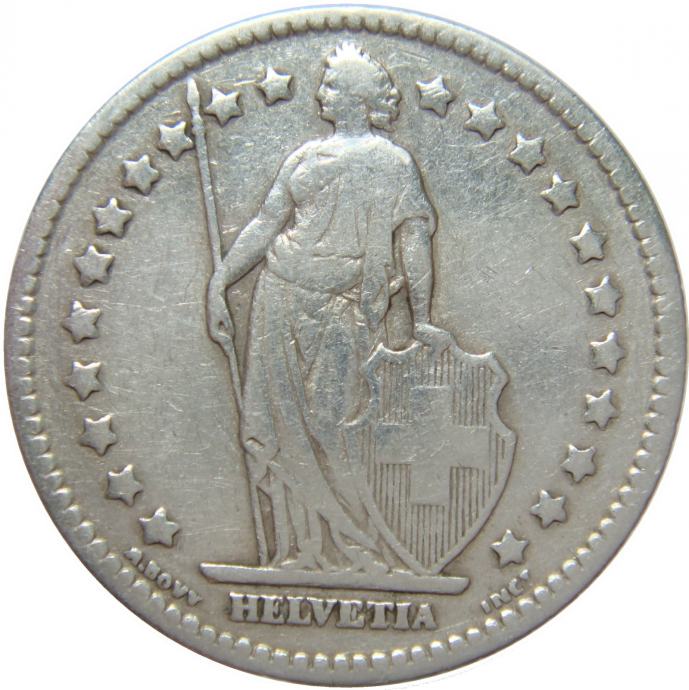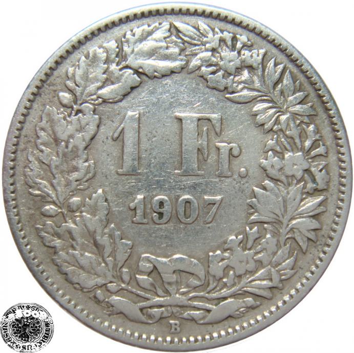 LaZooRo: Švica 1 Franc 1907 VF/XF d - Srebro