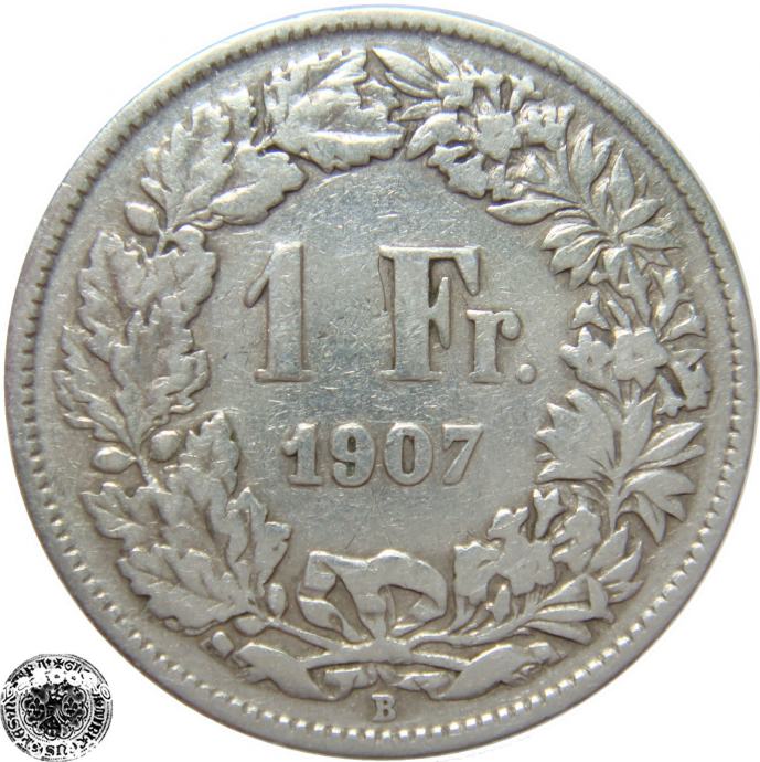 LaZooRo: Švica 1 Franc 1907 VF/XF e - Srebro