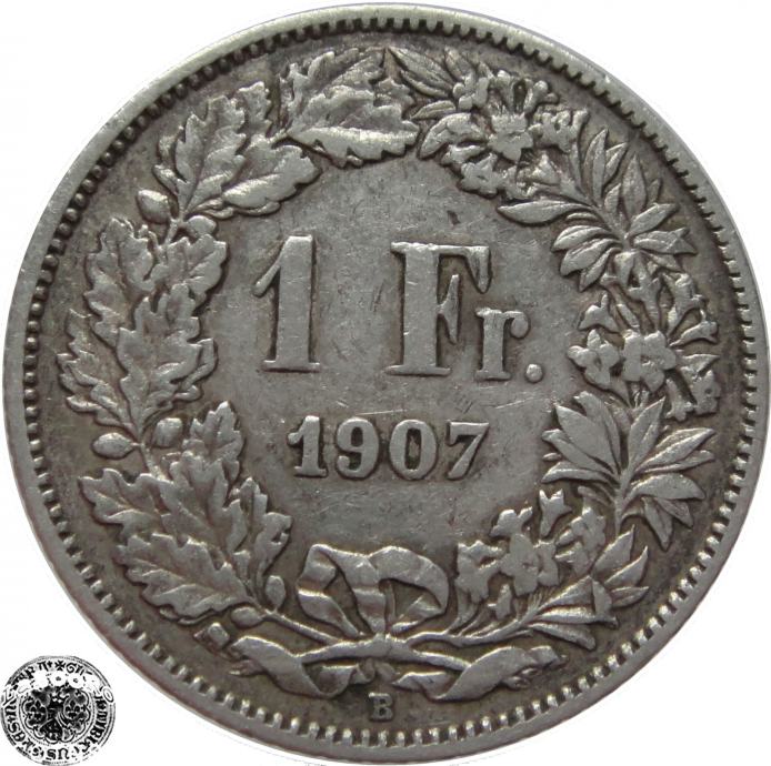 LaZooRo: Švica 1 Franc 1907 VF/XF - Srebro
