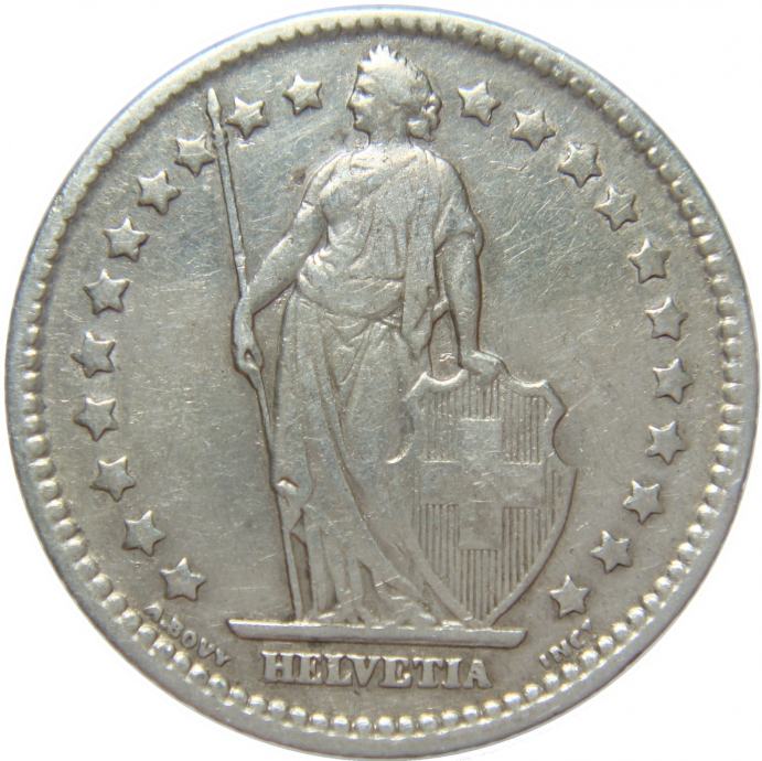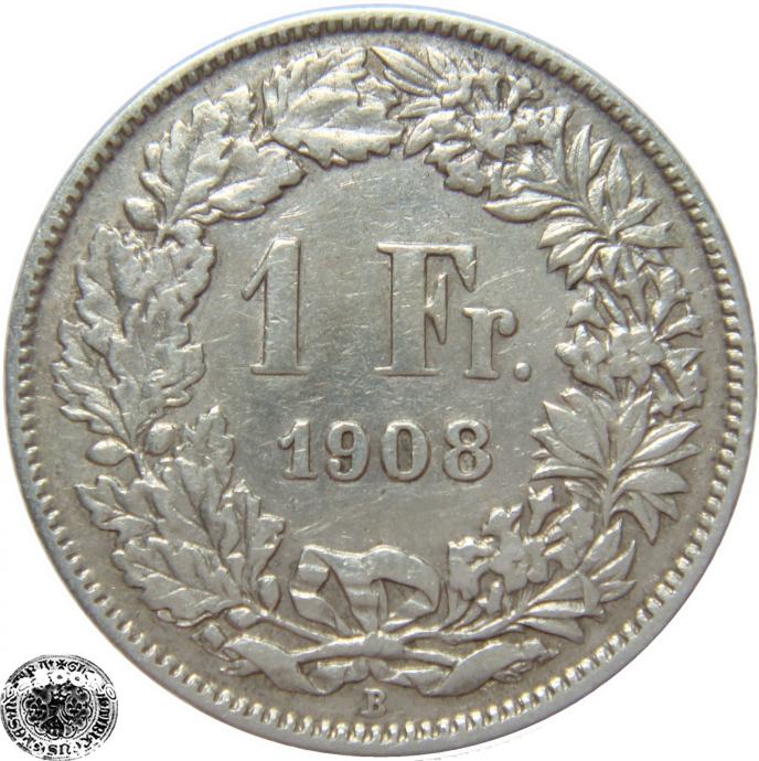 LaZooRo: Švica 1 Franc 1908 VF/XF c - Srebro