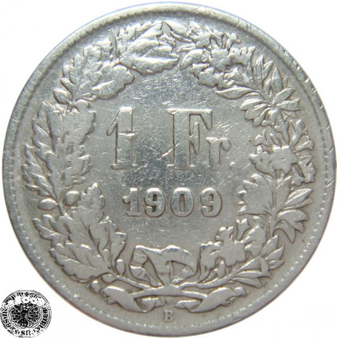 LaZooRo: Švica 1 Franc 1909 VF - Srebro