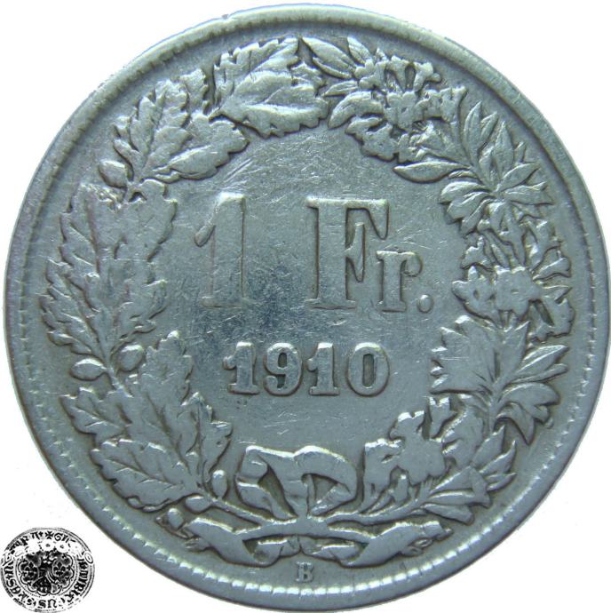 LaZooRo: Švica 1 Franc 1910 VF/XF c - Srebro