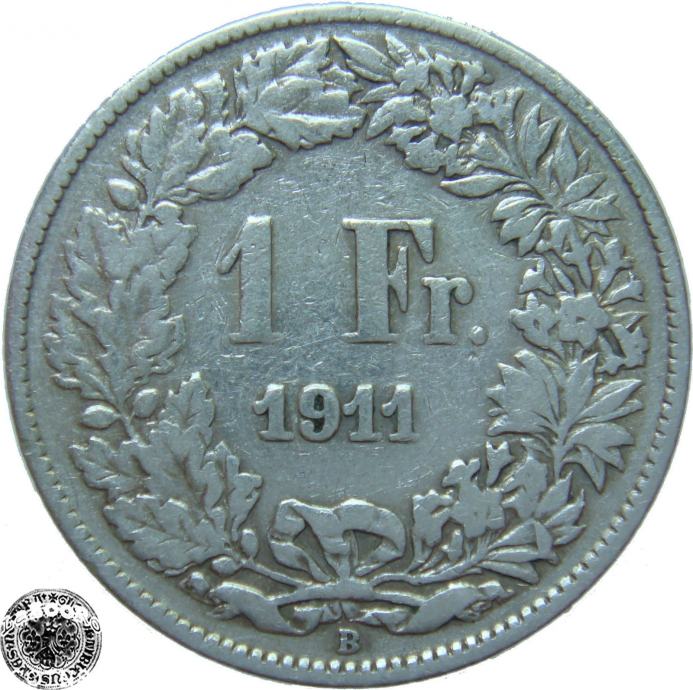 LaZooRo: Švica 1 Franc 1911 VF/XF a - Srebro